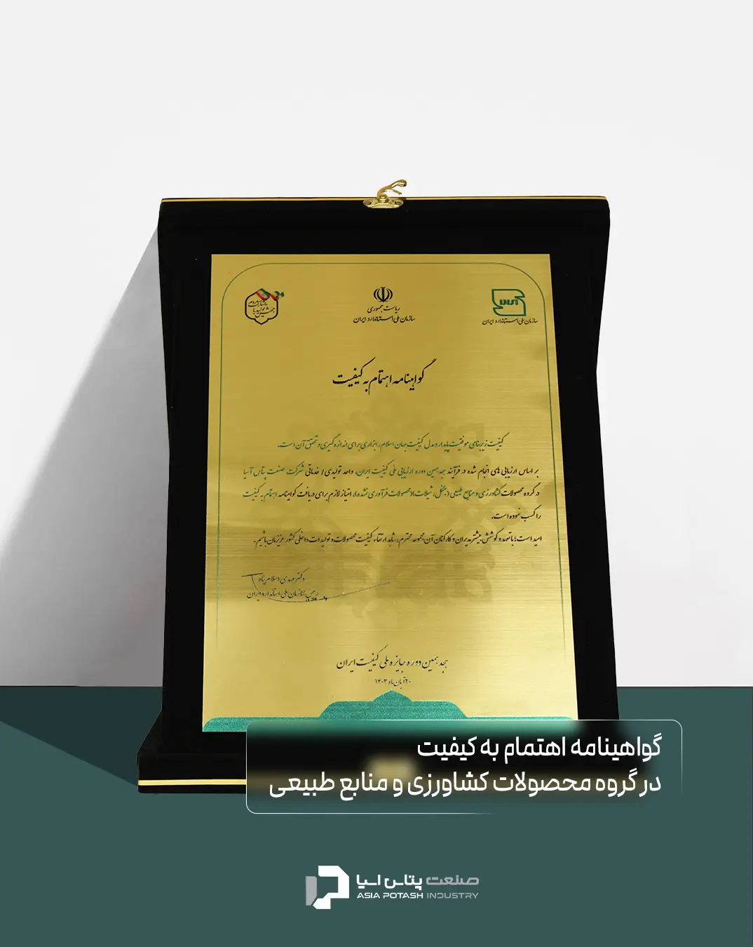 در هجدهمین دوره «جایزه ملی کیفیت ایران»، شرکت صنعت پتاس آسیا که سال گذشته موفق به کسب «جایزه اهتمام کیفیت» شده بود، امسال نیز با ارتقای سطح عملکرد خود در مسیر تعالی، در جمع نامزدهای دریافت «جایزه اشتهار کیفیت» قرار گرفت. این انتخاب بر پایه ارزیابیهای سازمان ملی استاندارد ایران و بررسی میدانی فرایندهای مدیریتی و تولیدی صورت گرفته است.